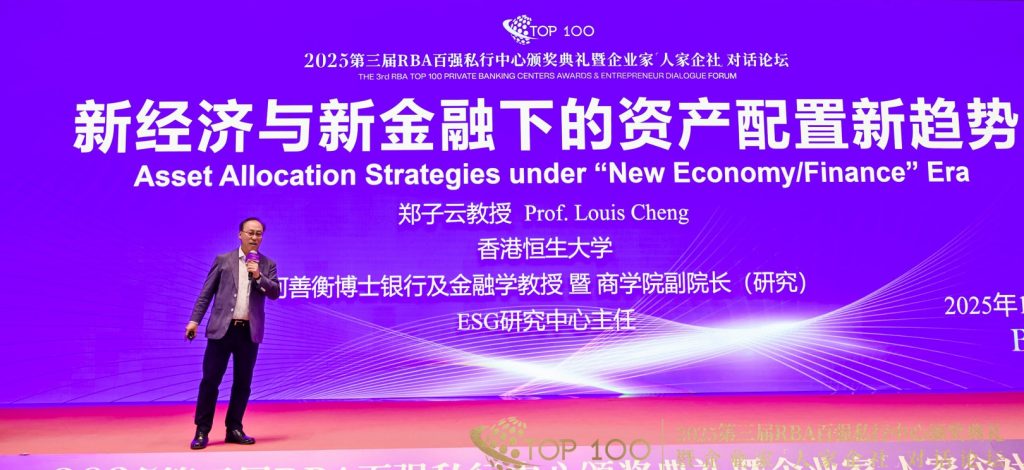 Prof. Louis Cheng delivered a featured presentation titled “The New Era of AI — Insights into ESG Investment and Green Finance” at the Retail Banking Annual Conference 2025 and RBA 8th Retail Banking Awards Ceremony in Hangzhou on April 9, 2025.